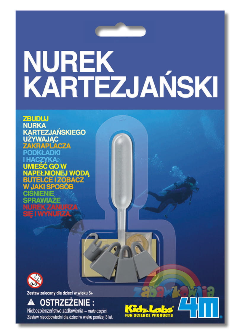 Podczas ściskania butelki zwiększa się ciśnienie w jej wnętrzu. To spręża powietrze wewnątrz zakraplacza, wpuszczając więcej wody do zakraplacza. W ten sposób staje się on cięższy i tonie. Kiedy przestajesz ściskać butelkę, ciśnienie znowu spada. Powietrze w zakraplaczu rozpręża się, wypychając wodę. To sprawia, że nurek staje się lżejszy i płynie na powierzchnię.