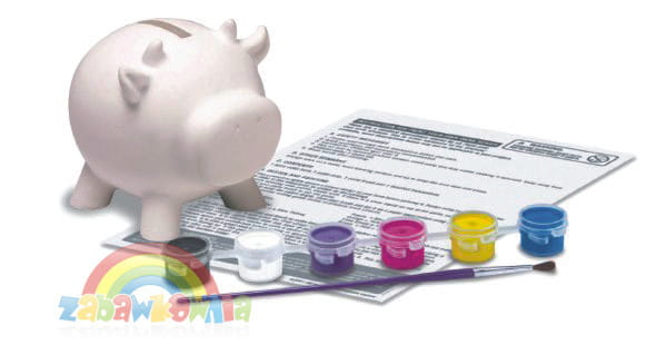 Teraz tylko od Ciebie zależy jak będzie wyglądała Twoja skarbonka - różowa w czerwone kwiatki, różowa lub jak pisanka. Do dyspozycji dostajesz wspaniałe farbki i skarbonkę do udekorowania nimi według własnego projektu.