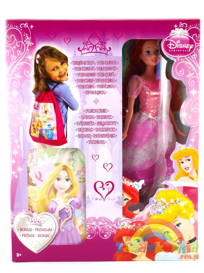 Do każdej lalki dołączony jest śliczny worek z wizerunkami wszystkich księżniczek Disneya.