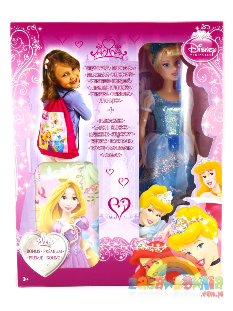 Do każdej lalki dołączony jest śliczny worek z wizerunkami wszystkich księżniczek Disneya.