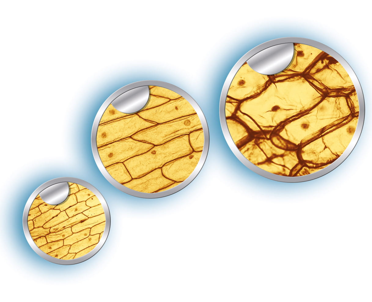 Mikroskop posiada elektryczne podświetlenie preparatów, to dość istotne usprawnieni ponieważ w standardowych mikroskopach wykorzystuje się lusterka, z którymi dzieci mają problem aby je ustawić prawidłowo.