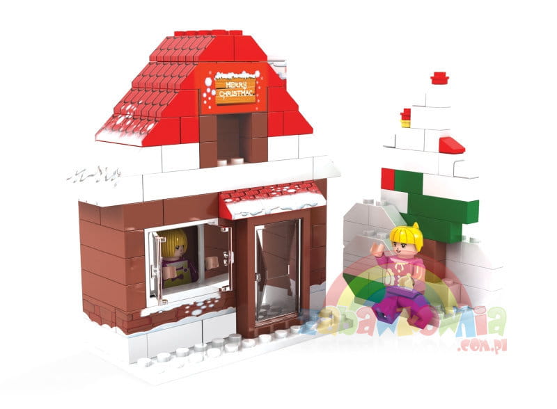 Zestaw klocków serii "BAŚNIOWA KRAINA", dzięki któremu zbudujemy ośnieżony zimowy domek.