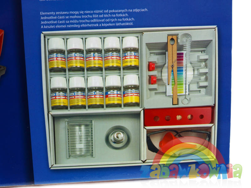 Zestaw „Laboratorium Chemiczne plus", pozwoli Ci poznać tajniki chemii i odkryć mnóstwo ciekawych substancji chemicznych, także tych znajdujących się w Twoim otoczeniu. Poprzez zmieszanie różnych związków chemicznych będziesz otrzymywać nowe substancje, ucząc się przy okazji o zachodzących reakcjach chemicznych. W miarę nabywanego doświadczenia dowiesz się, że praktyczne zastosowanie wiedzy chemicznej jest niezwykle kreatywne i polega na tworzeniu zupełnie nowych substancji: tworzyw sztucznych, syntetycznego kauczuku, włókien, lekarstw, farb, barwników itp.