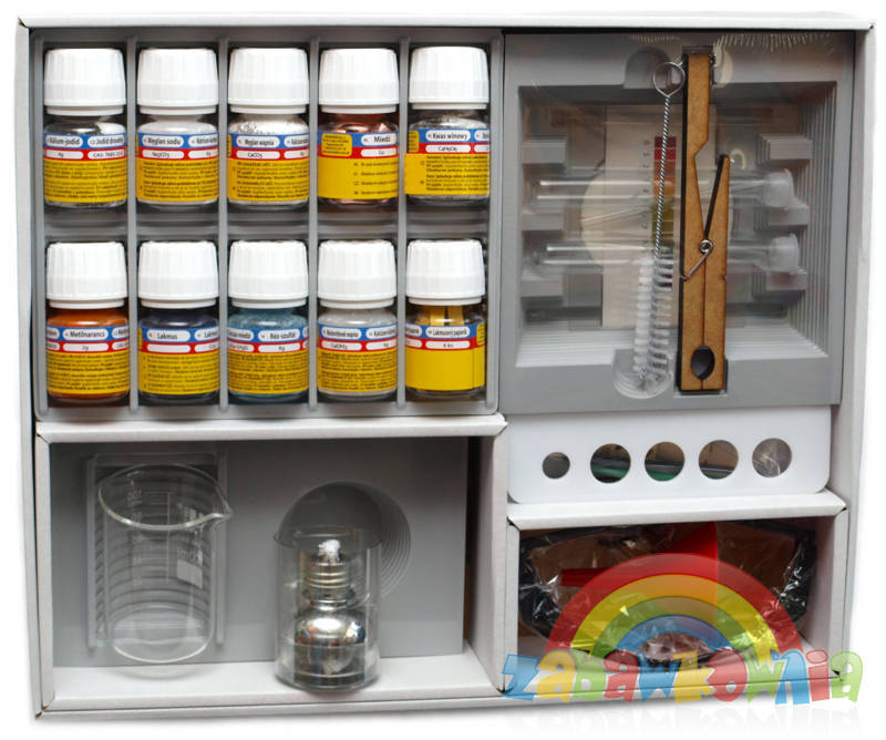Oferujemy zestaw, który pozwoli Ci wejść w tajemniczy świat chemii. Może służyć jako wspaniałe narzędzie, dzięki któremu poznasz tajniki tej ciekawej dziedziny wiedzy. Może być używany zarówno w szkole jak i w domu.