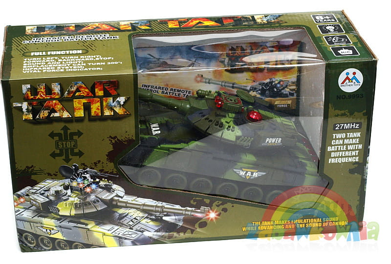 Czołg sterowany drogą radiową. Ma możliwość pełnej kontroli jazdy jak również obracania wieżyczką oraz przycisk strzału. Na czas strzału pojazd zatrzymuje się i wydając dźwięk wybuchu oraz błysku z lufy przez ułamek sekundy cofa się udając odrzut. Jeśli czołgiem nie sterujesz czołg wydaje dźwięk pracującego na wolnych obrotach diesla. Ale to nie wszystko, to dopiero początek zabawy. Każdy z czołgów ma wbudowany czujnik trafienia, nadajnik strzału, oraz system zliczający trafienia. Można więc rozpocząć polowanie.