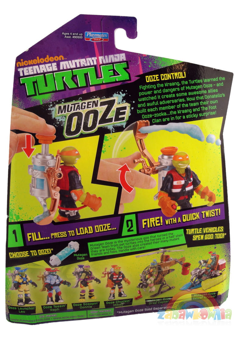 Figurka wyposażona jest w dozownik i wyrzutnię mutagenu - toksycznej substancji, która spowodowała zmutowanie żółwi i ich mistrza.