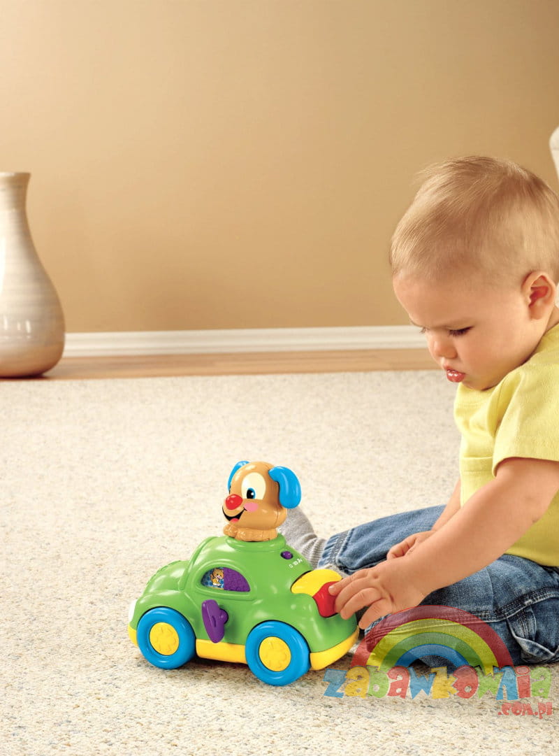 Samochód szczeniaczka to zupełnie nowa zabawka Fisher-Price, która poprzez zabawę uczy Twojego maluszka i pozwala nabywać nowych umiejętności. Dziecko uczy się kolorów , liczb, pozdrowień i przeciwieństw.
