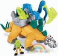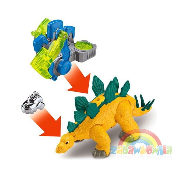 Duży i silny stegozaur dzięki groźnemu bojowemu wyposażeniu jest bardziej przerażający i groźny. Dinozaur został wyposażony w ciekawą wyrzutnię miotacz, w której specjalny dysk służy do aktywowania funkcji. Masywny stegozaur ma potężny młot, który potrafi skruszyć każdą skałę. Figurka może jeździć na grzbiecie dinozaura, a dodatkową atrakcją jest jej przezroczysta zbroja.