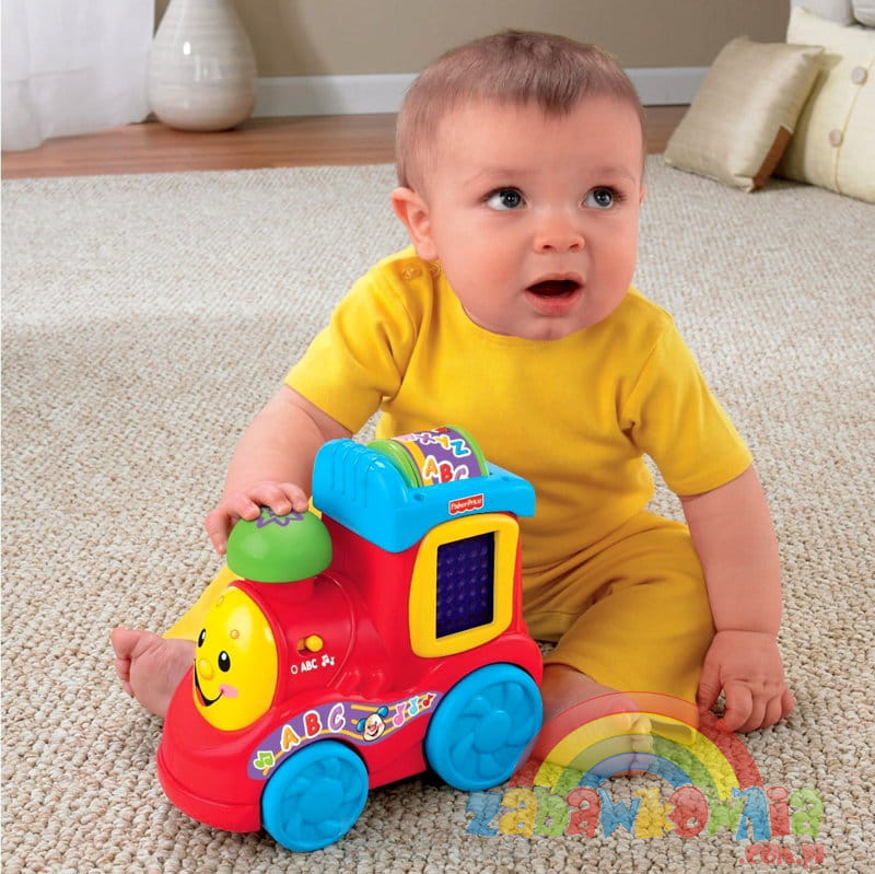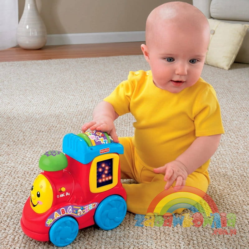 - gdy dziecko będzie się bawiło lokomotywą pchając ją lub ciągnąć usłyszy piosenkę o literkach i śmieszne wypowiedzi