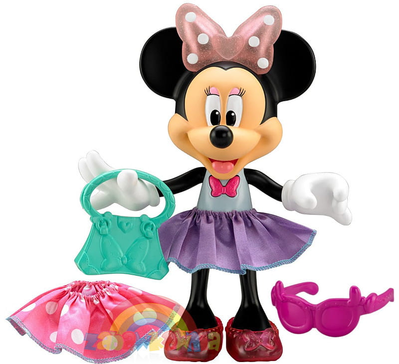 Ulubienica dziewczynek Myszka Minie może zostać Twoją przyjaciółką, którą będzie można przebierać i dobierać urocze dodatki. Ma dwie spódniczki które możesz zmieniać, w tym jedną duże białe grochy. Ma modne okulary i torebkę.
