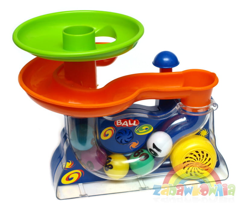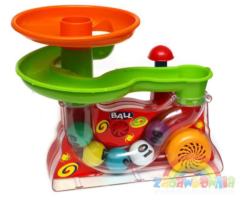 Czasem jakiś piłeczka tak się rozbryka, że wyskoczy ze zjeżdżalni, a zadaniem dziecka będzie umieścić je tam z powrotem.
