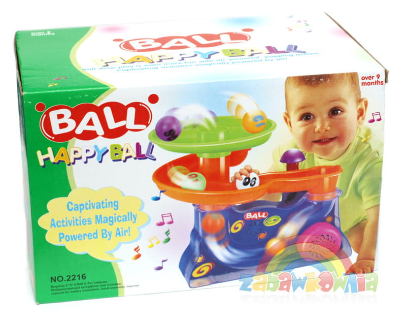 Wspaniała fontanna piłek. Każde przyciśnięcia grzybka włącza dźwięk ze śmiesznymi efektami i wiatrak, który wprawia, że 5 kolorowych piłeczek zaczyna wyskakiwać z fontanny i zjeżdżać po zjeżdżalni dając maluchowi mnóstwo frajdy.