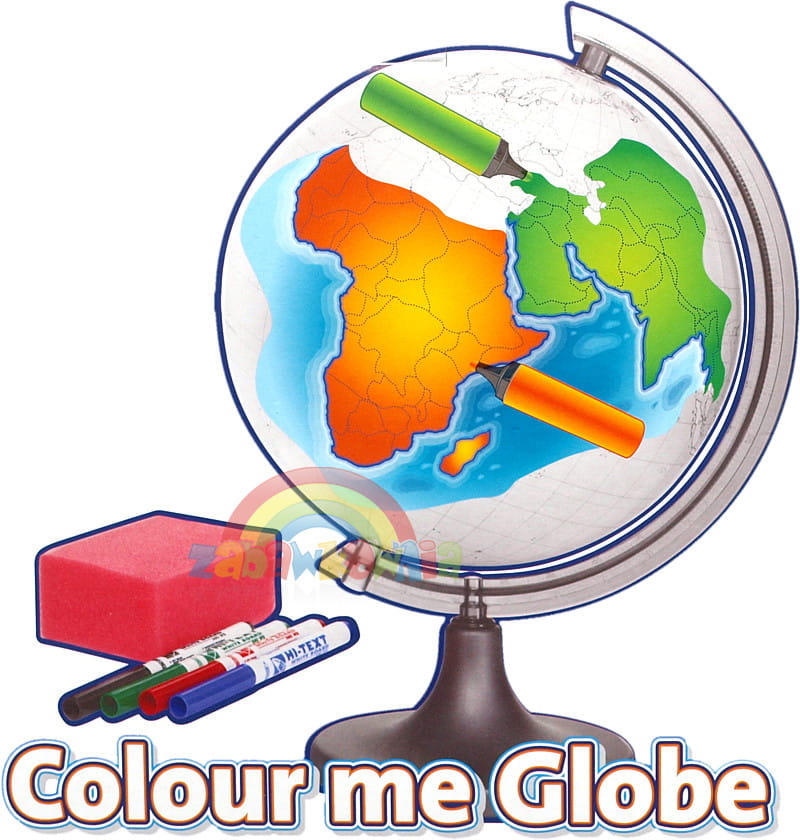 Nie musisz się martwić oto, że zamalowany globus już taki zostanie. Do jego kolorowania wykorzystano flamastry "whiteboard" ścieralne, które łatwo dadzą się usunąć dołączoną gąbką.