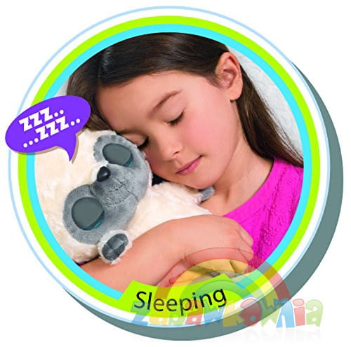 Gdy położysz go spać, po chwili zaśnie on zamykając oczka i smacznie pochrapując.