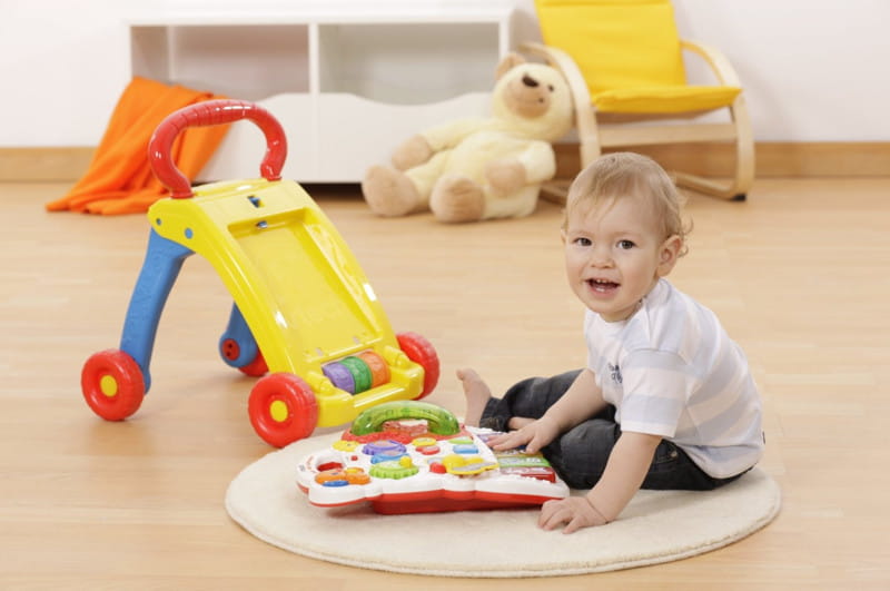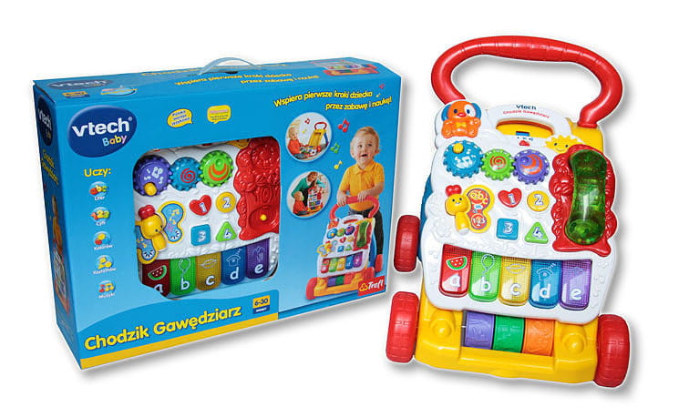 Uczy literek, cyferek i kształtów, wspomaga naukę chodzenia