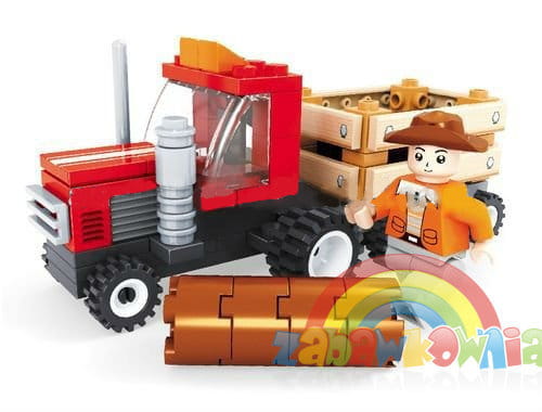 Zestaw klocków serii "FARMA", dzięki któremu zbudujemy traktor z przyczep ą.