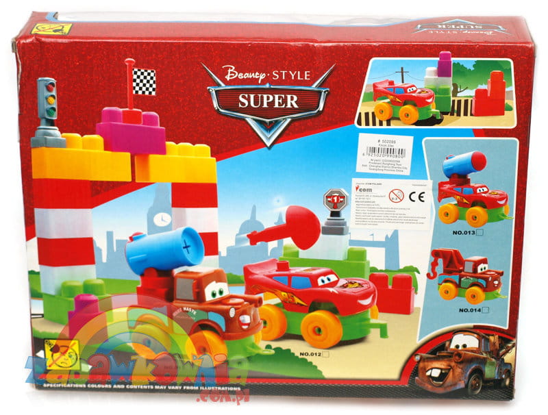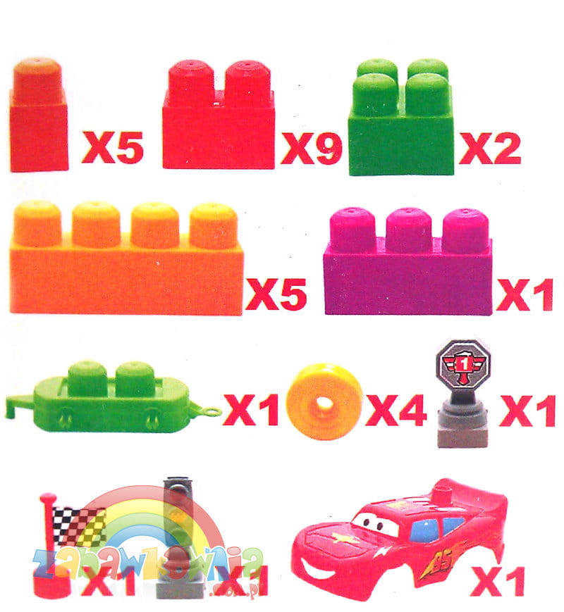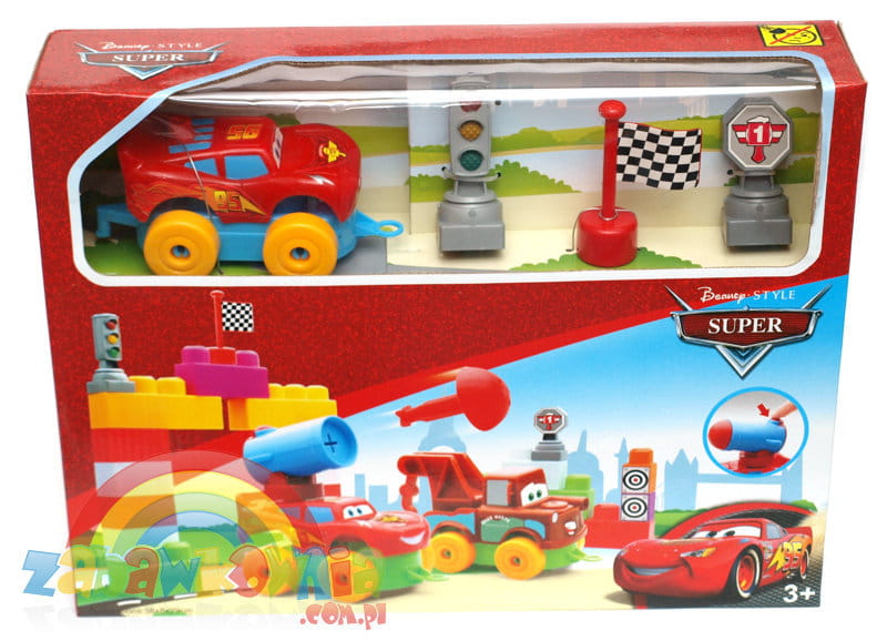 Kolorowe klocki, w których główną atrakcją jest autko. Możemy je złożyć z klocków i zorganizować wyścig. Mamy flagę startową, sygnalizator świetlny i puchar zwycięzcy. Z klocków zbudujmy bramkę mety, a może podium. To wspaniała kolorowa zabawa.