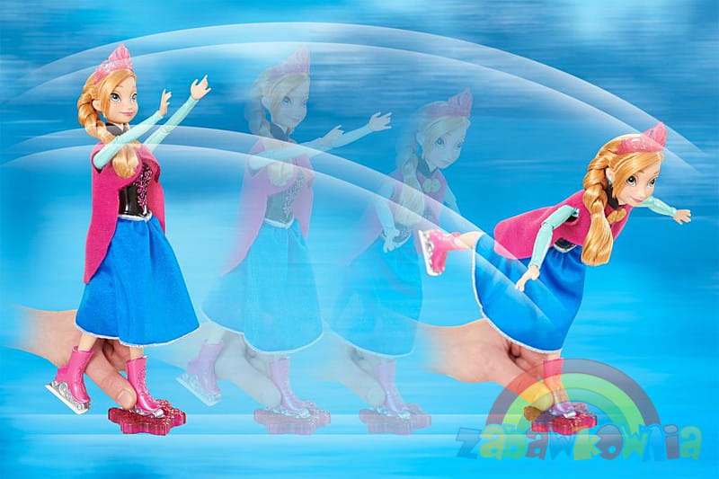 Piękna lalka Anna z filmu "Kraina Lodu" która w pięknych pozach sunie po lodzie. Przesuń lalkę do przodu a zobaczysz jak samodzielnie przyjmuje figurę łyżwiarki.