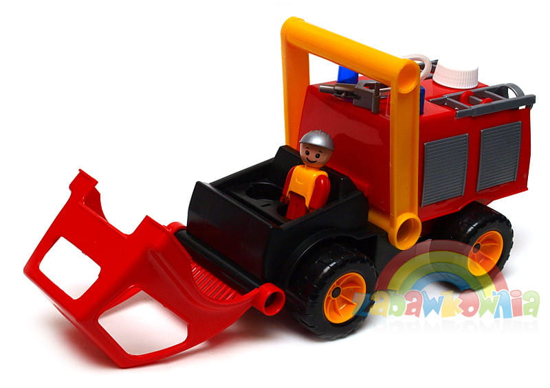 Samochód strażacki z prawdziwą armatką wodną świetnie się sprawdzi w domu, ogrodzie i piaskownicy. Autko ma podnoszoną kabinę, gdzie włożyć możesz dołączonego ludzika strażaka. Na wozie strażackim znajduje się dwuczęściowa drabina strażacka ze specjalnym uchwytem na figurkę. Samochód posiada duży wygodny uchwyt, który przypadnie do gustu zwłaszcza młodszym dzieciom. Można łapiąc za niego z łatwością przenosić wóz gaśniczy lub toczyć go po podłodze.