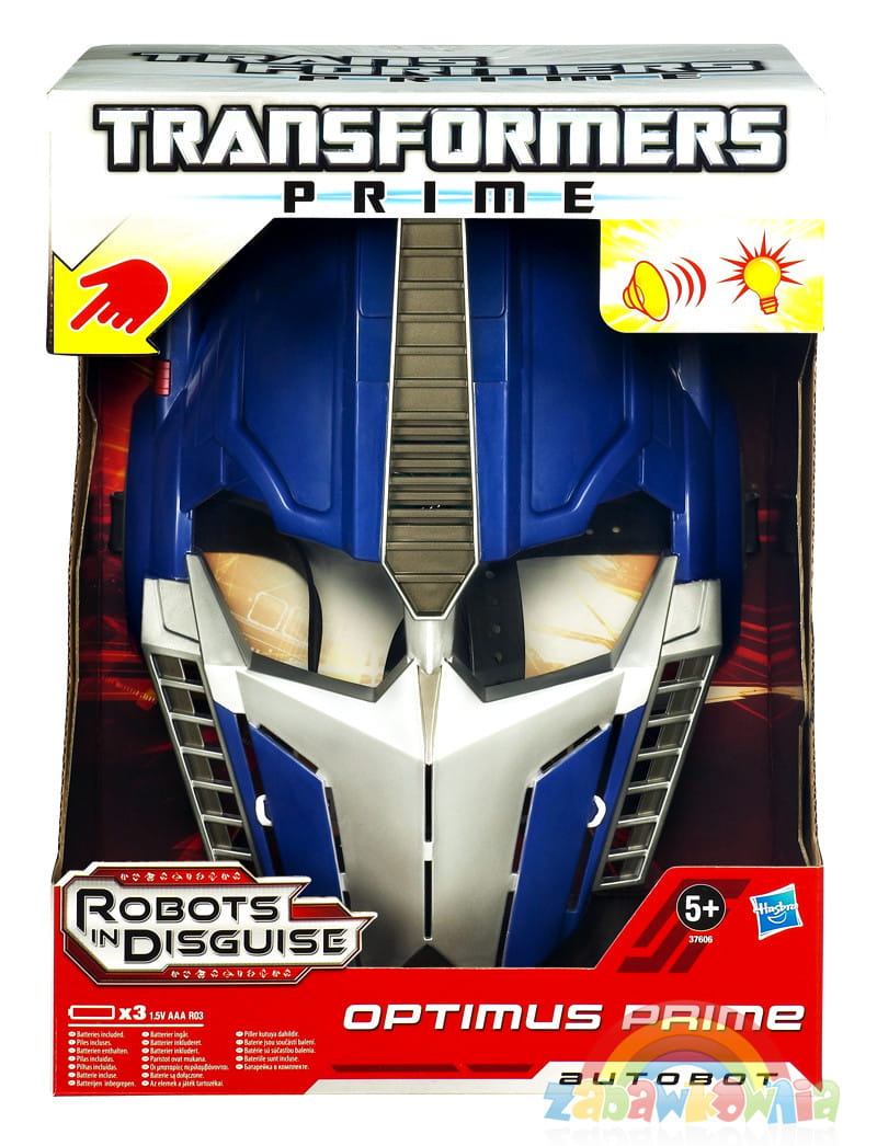 Maska po naciśnięciu czerwonego przycisku wypowiada swoje imię "Optimus Prime" i wydaje dźwięki transformacji. Odgłosy są świetnie odtworzone, dokładnie takie jak w filmie. Miłośnik bohaterów Transformers będzie zachwycony możliwościami jakimi daje mu ta maska. Dodatkowo okulary maski podświetlane są niebieskim światłem podczas dźwięków.