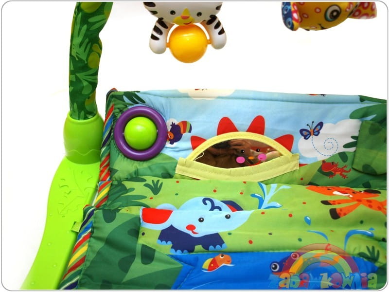 - dla malucha siedzącego, będzie Ono mogło bawić się zwierzątkami albo żyrafą czy motylkami zwisającymi z kolorowego drzewka.