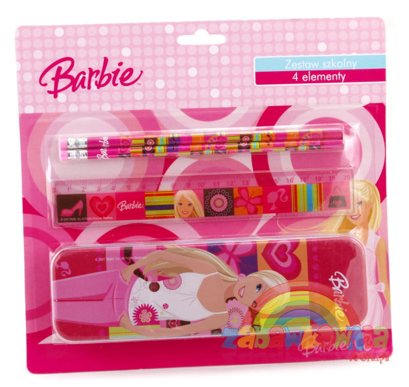 Metalowy piórnik szkolny Barbie - zestaw szkolny 4 elementy