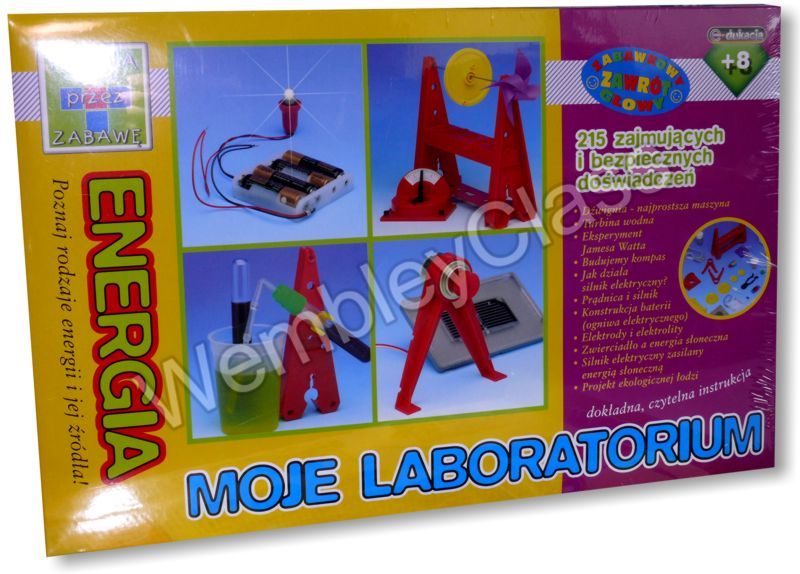 Zestaw „Moje Laboratorium - Energia" zawiera opisy i sprzęt niezbędny do przeprowadzenia olbrzymiej liczby doświadczeń, które pozwolą Ci zrozumieć otaczające Cię zjawiska związane z szeroko pojmowaną problematyką energii.