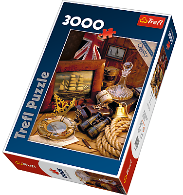 Puzzle 3000 elementów, które po ułożeniu przedstawiają kompozycję z przedmiotów jednoznacznie kojarzącymi się z żeglarstwem.