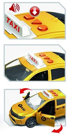 - odgłosy silnika, klaksonu włączane przyciskami na dachu