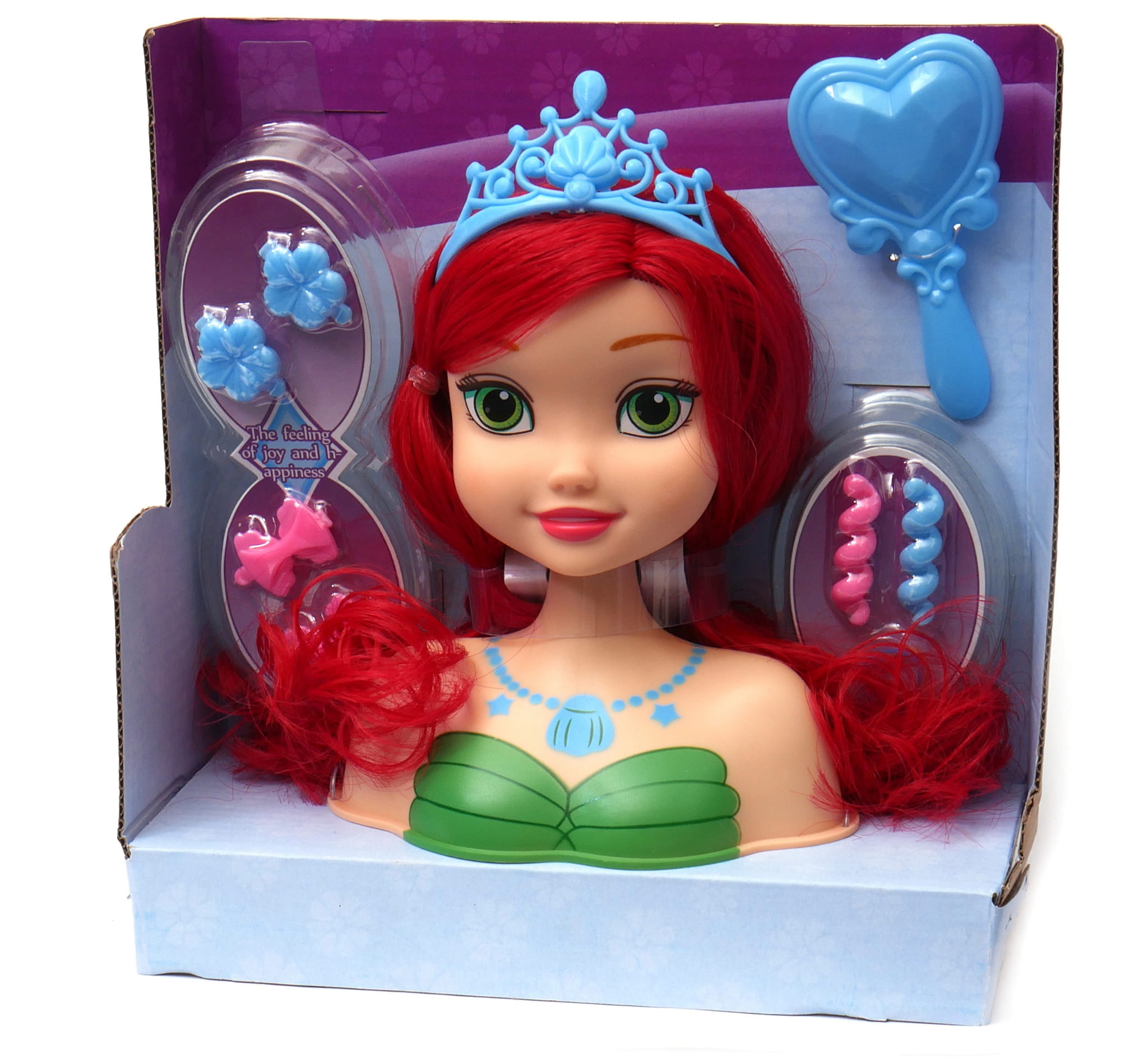 Arielka - głowa do stylizacji Głowa do stylizacji z akcesoriami do zabawy w wizażystkę lub fryzjerkę. Do dyspozycji mamy grzebień i spinki do włosów. Małe dziewczynki uwielbiają bawić się włosami. Teraz mają ochotniczkę, która nigdy nie odmówi zabawy.