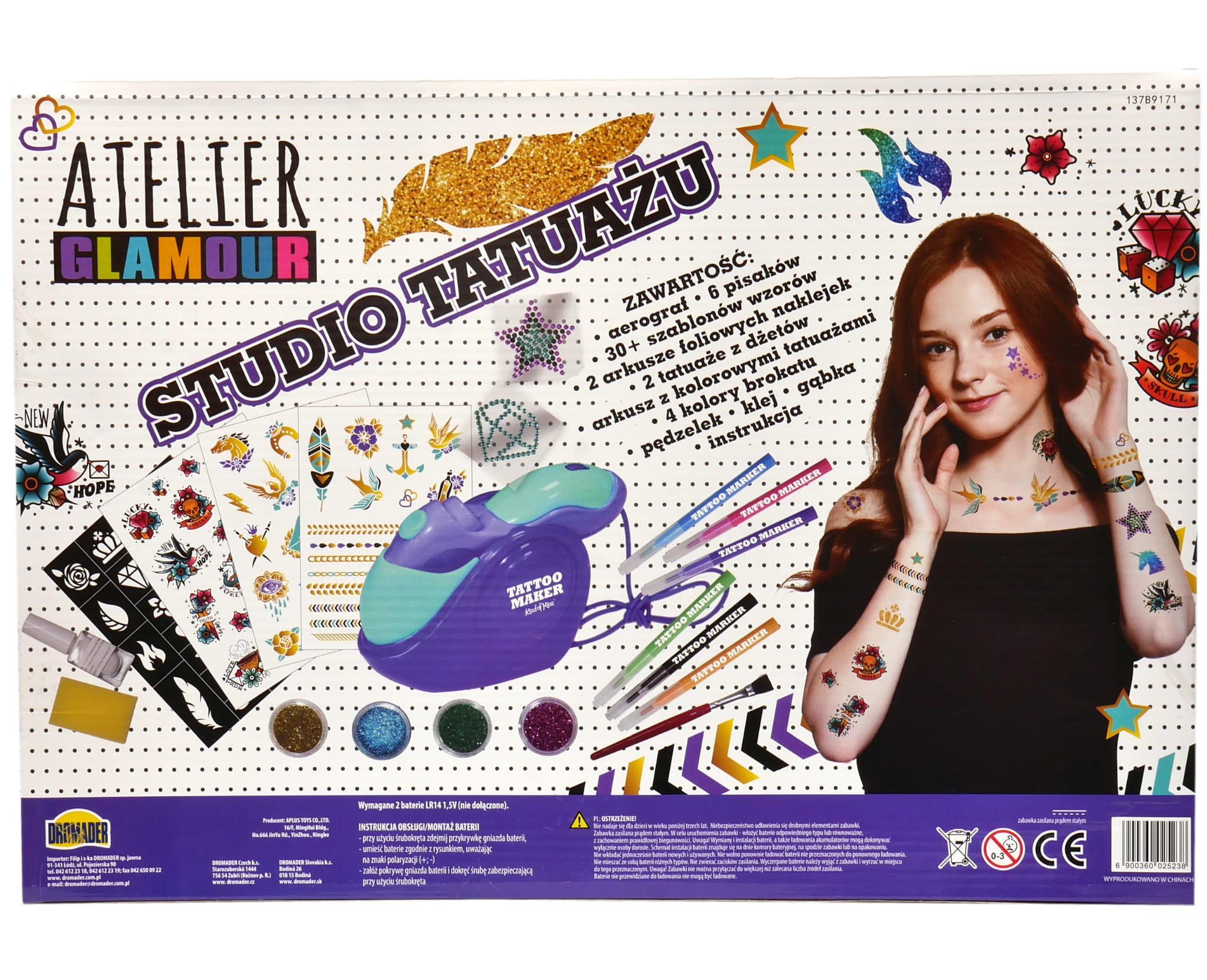 Zestaw, który ci pozwoli na tworzenie niezwykłych kolorowych tatuaży. Skorzystaj z dołączonych szablonów i maszynki na baterię, by stworzyć ciekawe kolorowe kompozycje. Możesz je ozdobić kolorowym brokatem i błyszczącymi dżetami.