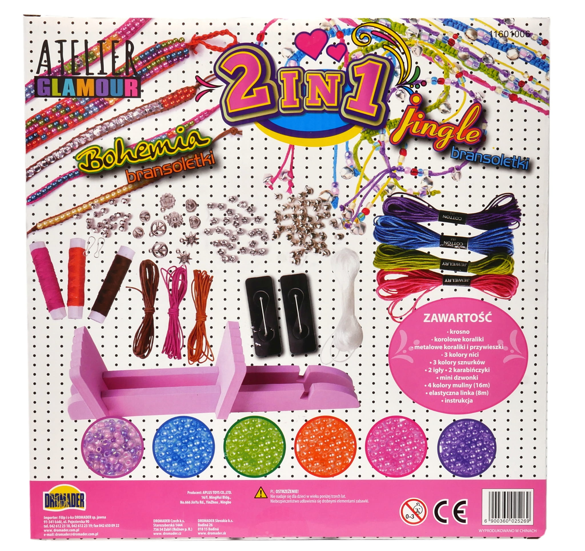 Wykonaj z załączonych elementów bransoletki w dwóch niesamowitych, oryginalnych stylach. Dzięki załączonej ilustrowanej instrukcji w mig nauczysz się wykonywać fantazyjne wzory ozdobnej biżuterii samodzielnie..