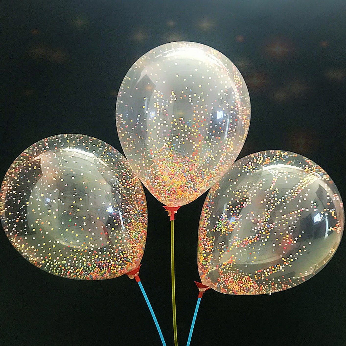 Balony dekoracyjna transparentne z piankowymi kolorowymi kulkami