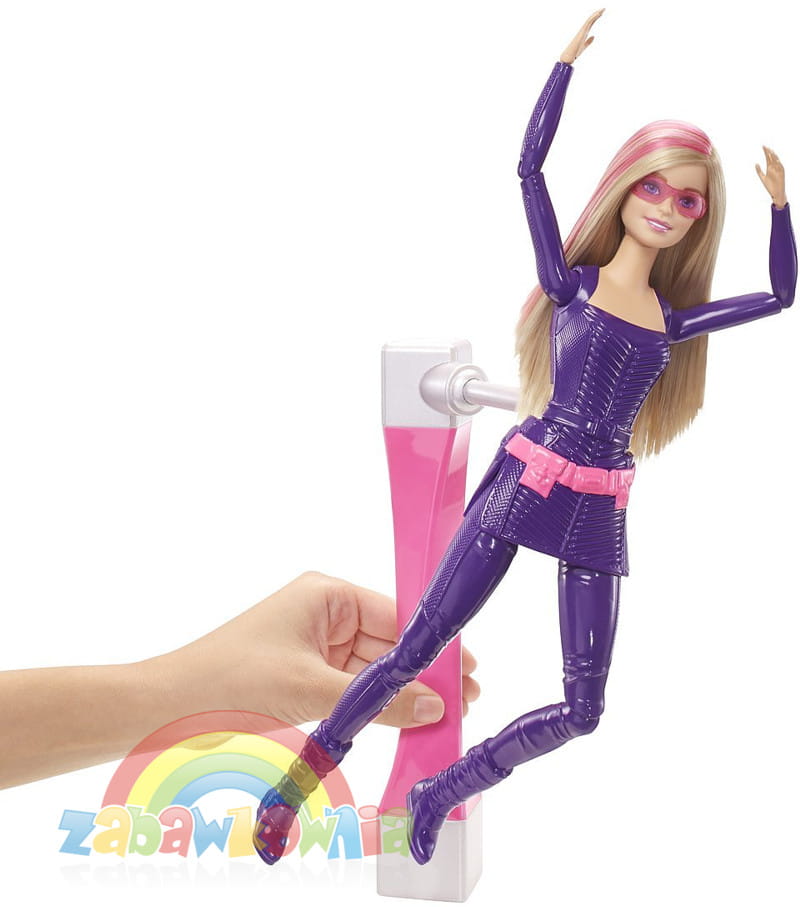 Wejdź do akcji z Barbie i jej przyjaciółkami w nowym filmie "Barbie Tajne Agentki". Jako tajna agentka Barbie ubrana jest we fioletowy kombinezon opięty paskiem i w wysokich butach. Do kompletu okulary słoneczne i płaszcz, które świetnie maskują tożsamość, a agentowi to się przydaje. Nie zapomnijmy, że nim Barbie została tajnym agentem była gimnastyczką. W zestawie znajdziesz przyrząd podłączany do lalki, wprawiający ją w ruch, a ona wykonuje wyjątkowe akrobacje. Przesuń uchwyt po powierzchni lub obróć, a poznasz niektóre z jej umiejętności. Dzięki takiej lalce odtwarzanie scen akcji z filmu będzie wspaniałą zabawą. Dziewczynki na pewno wymyślą także wiele fascynujących przygód, dzięki swojej wyobraźni, gdzie przydadzą się te umiejętności tajnej agentki.
