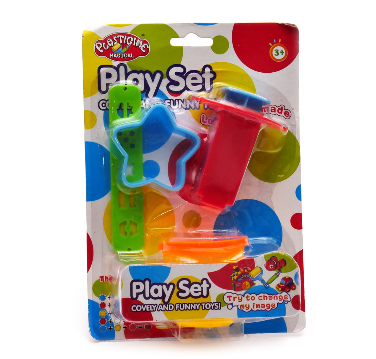Niezwykła tubka ciastoliny pełna niesamowitych akcesoriów. Sama tubka jest foremką w dnie kubeczka służącą do odciskania. Ponadto znajdziemy wyciskarkę z pięcioma wzorkami i wykrojnik. Kubeczek mieści około 100g ciastoliny.