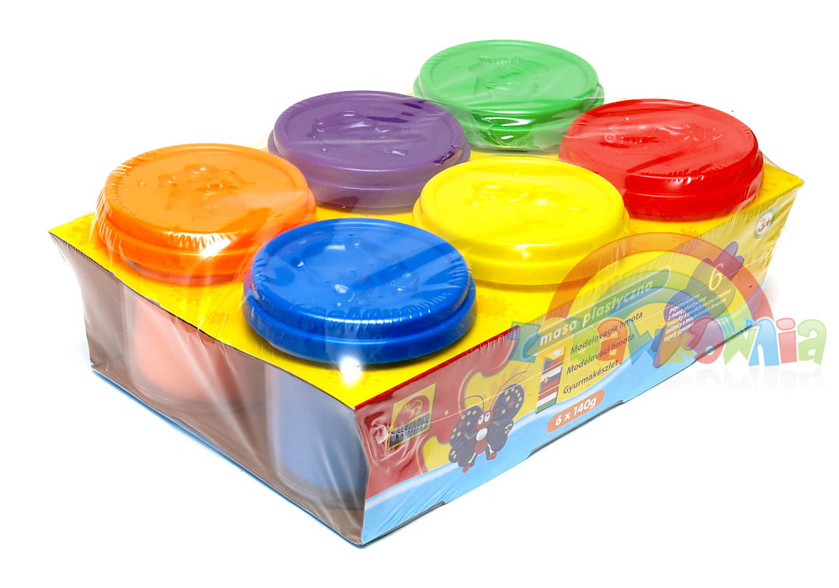 6 tubek po 140g kolorowej ciastoliny. Będzie wspaniałe uzupełnienie do posiadanych już zestawó do zabawy taką masą plastyczną.