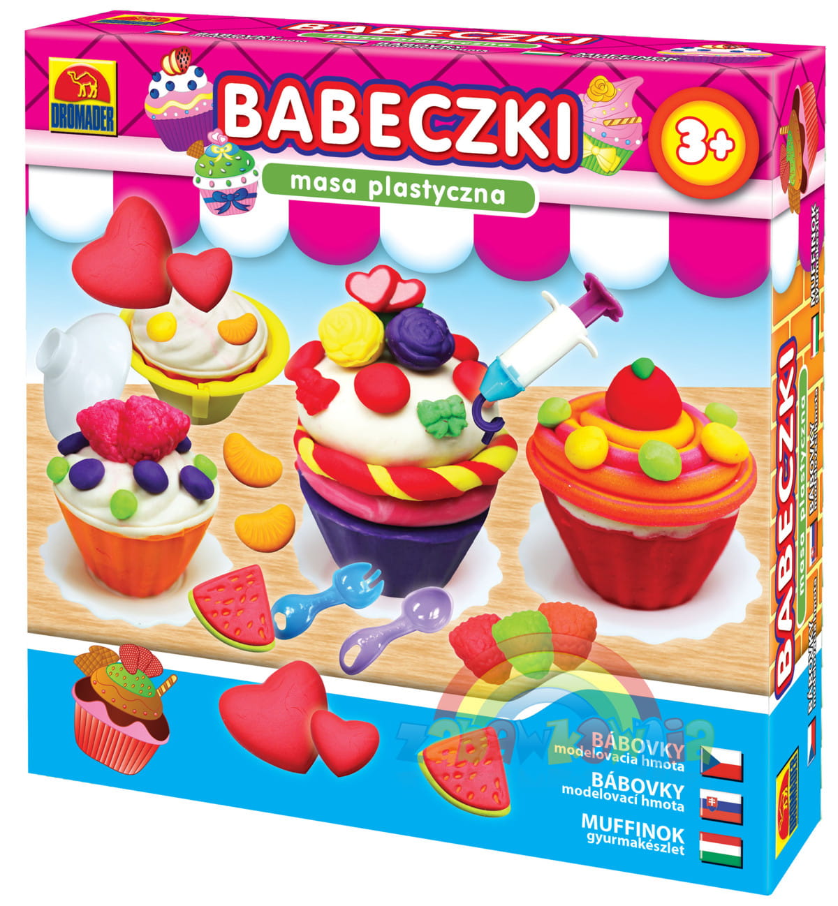 Lukrowane babeczki, z posypką, z owocami, kolorowe i we wzorki. Takie babeczki możesz wykonać z tym zestawem. Jak prawdziwy cukiernik będziesz mieć okazję zdobić je z ciastolinowej szprycy.