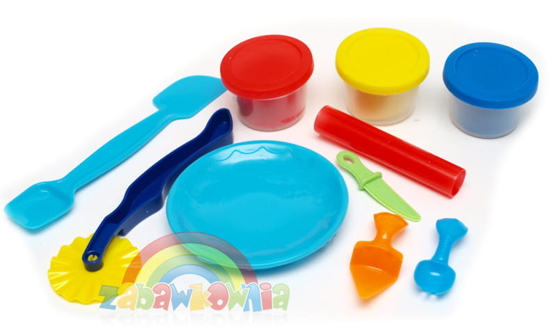 Trzy 40 gramowe tuby ciastoliny i akcesoria pozwolą na zrobienie smacznie wyglądającej pizzy z ciastolinowymi dodatkami. Dziecko podczas takiej zabawy rozwija swoje zdolności plastyczne i kreatywnego myślenia. Uczy się jak powstają nowe kolory przy mieszaniu barw podstawowych.