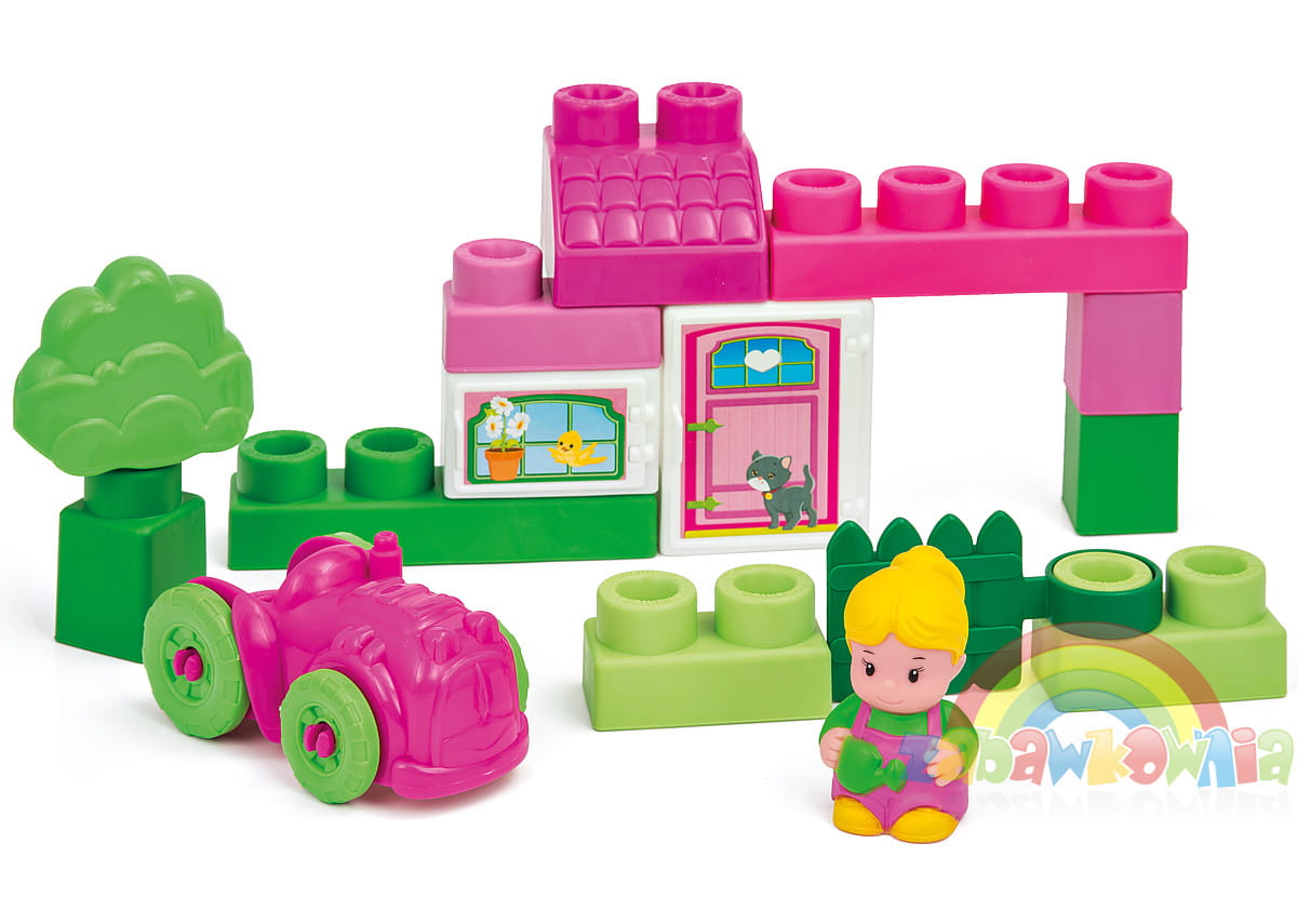 Zestaw Couuntry House to zestaw miękkich klocków z linii Clemmy Plus przedstawiający domek na wsi. Znajdziemy tan nawet autko dla małej farmerki.