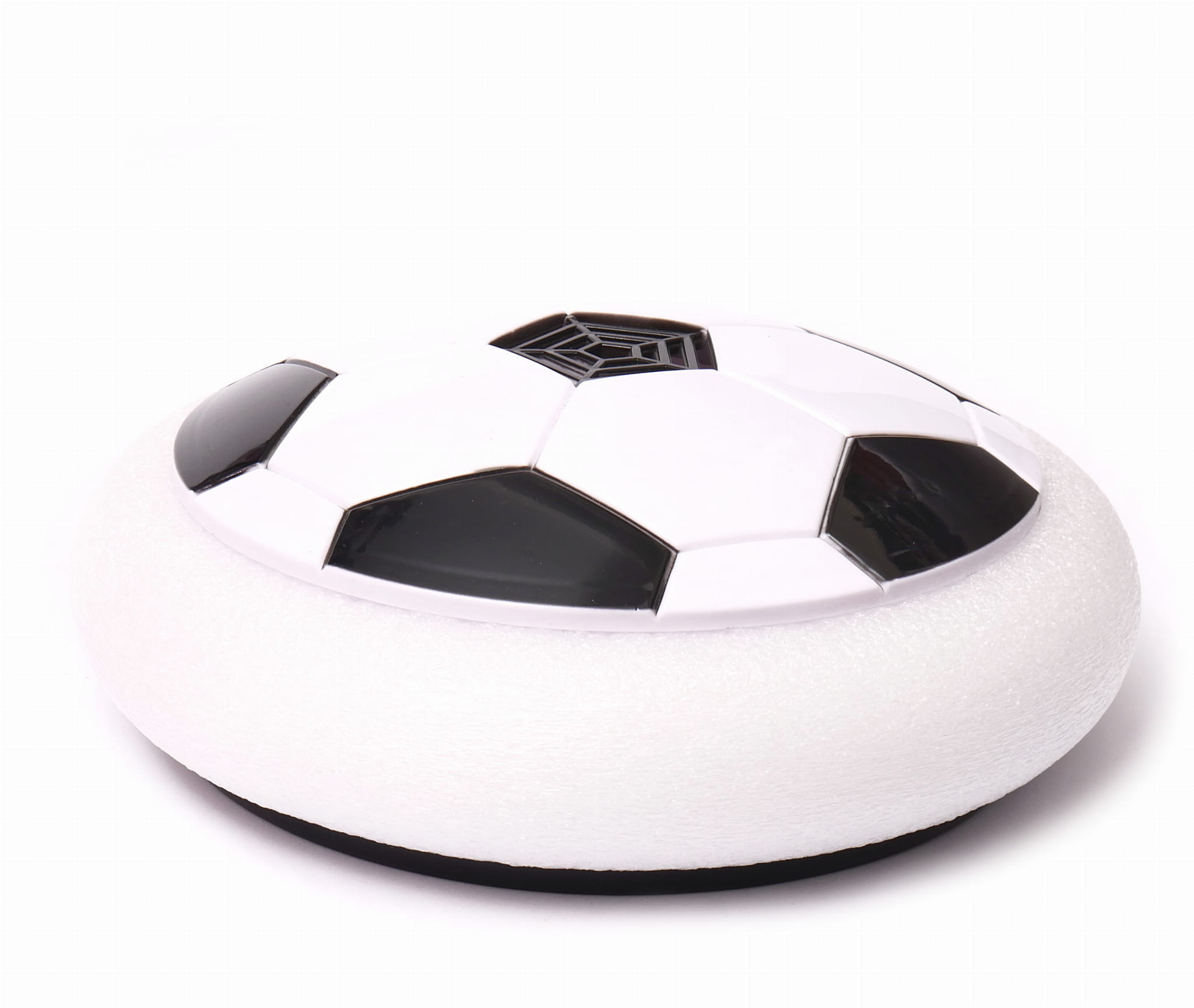 Piłka, która unosi się w powietrzu na poduszce powietrznej niczym UFO. Dzięki temu płynnie szybuje po podłodze jakby ślizgała się bez udziału tarcia. Taka nowoczesna piłka nożna to ciekawa propozycja dla najmłodszych dzieci, który na pewno będzie bawiła takim latającym obiektem, a migające światełka uatrakcyjniać będą zabawę. Wokół piłki jest gąbkowy zderzak zabezpieczający ją jak i obiekty, o które się będzie odbijać przed uszkodzeniem.