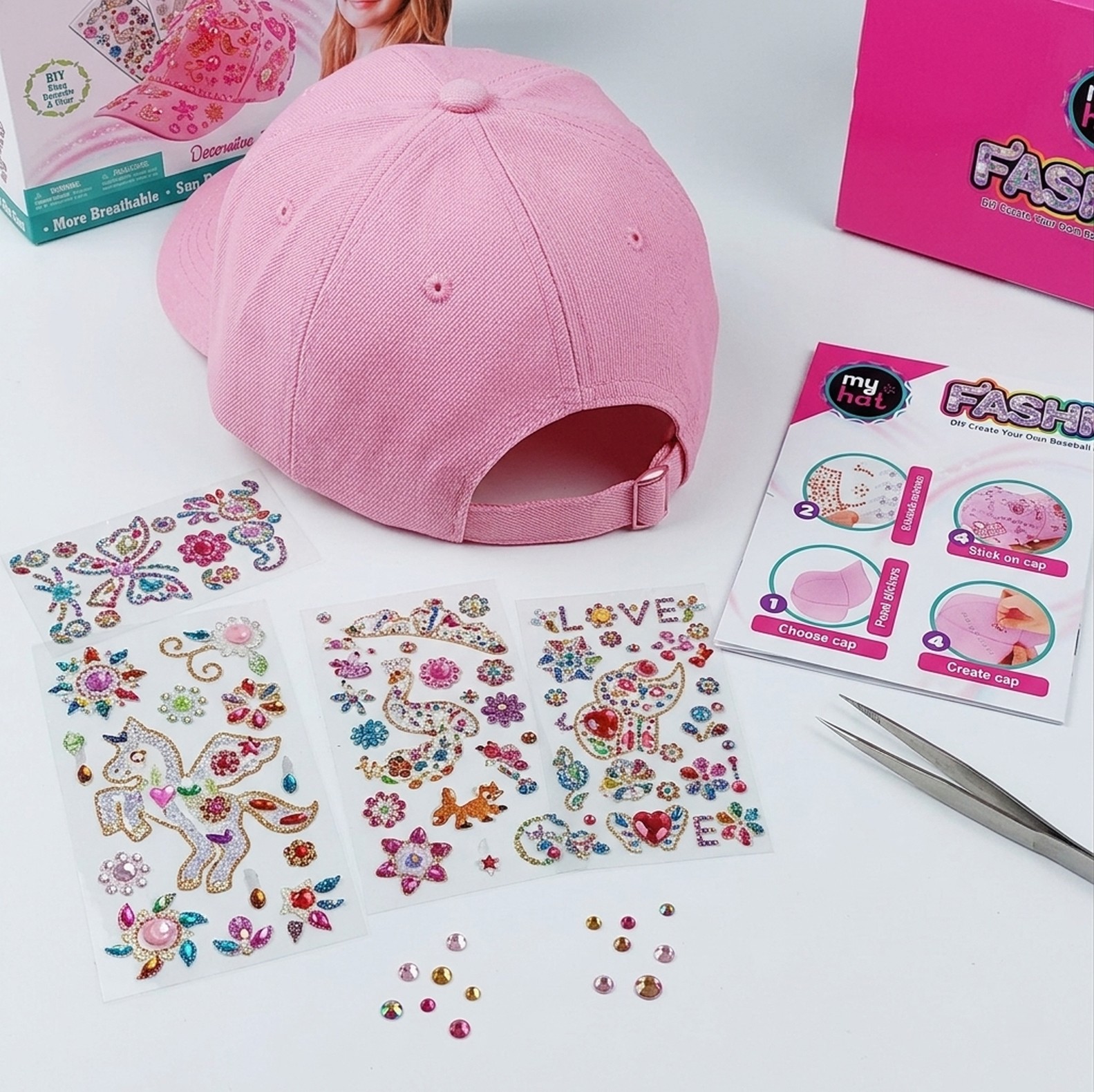Czy Twoje dziecko marzy o tym, by zostać prawdziwą projektantką mody? Z zestawem My Hat Fashion, każda dziewczynka może zamienić klasyczną czapkę z daszkiem w unikatowe dzieło sztuki pełne blasku!
