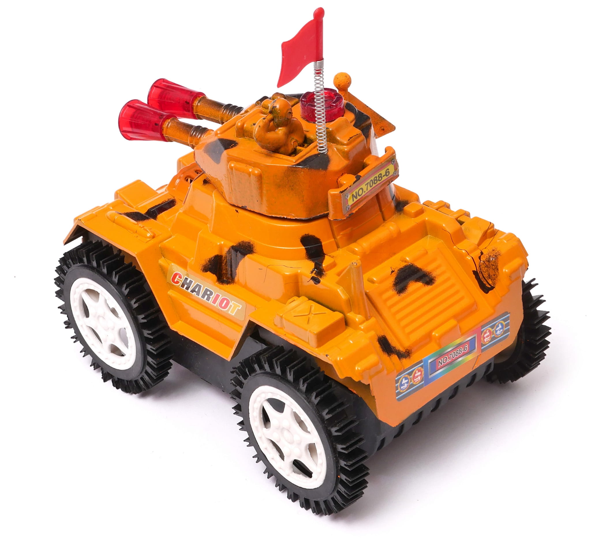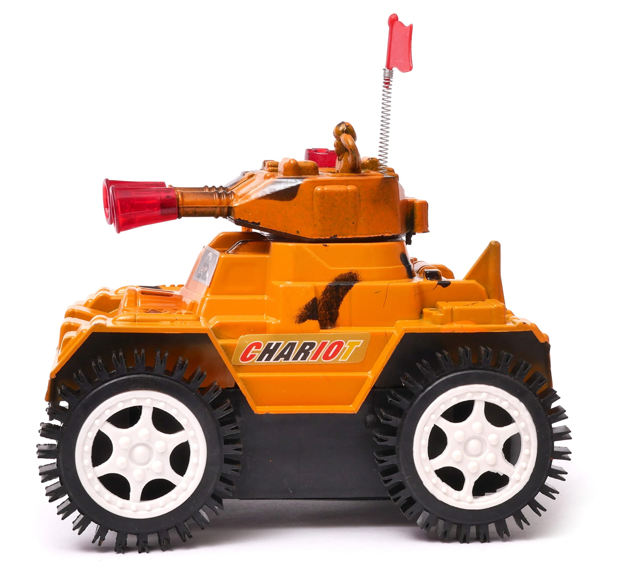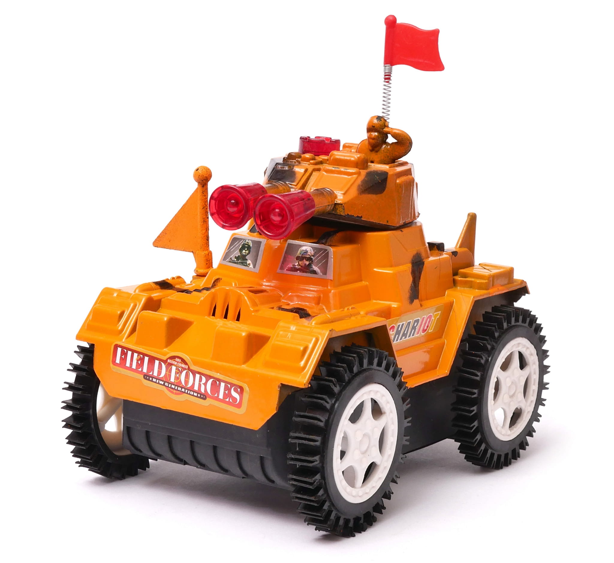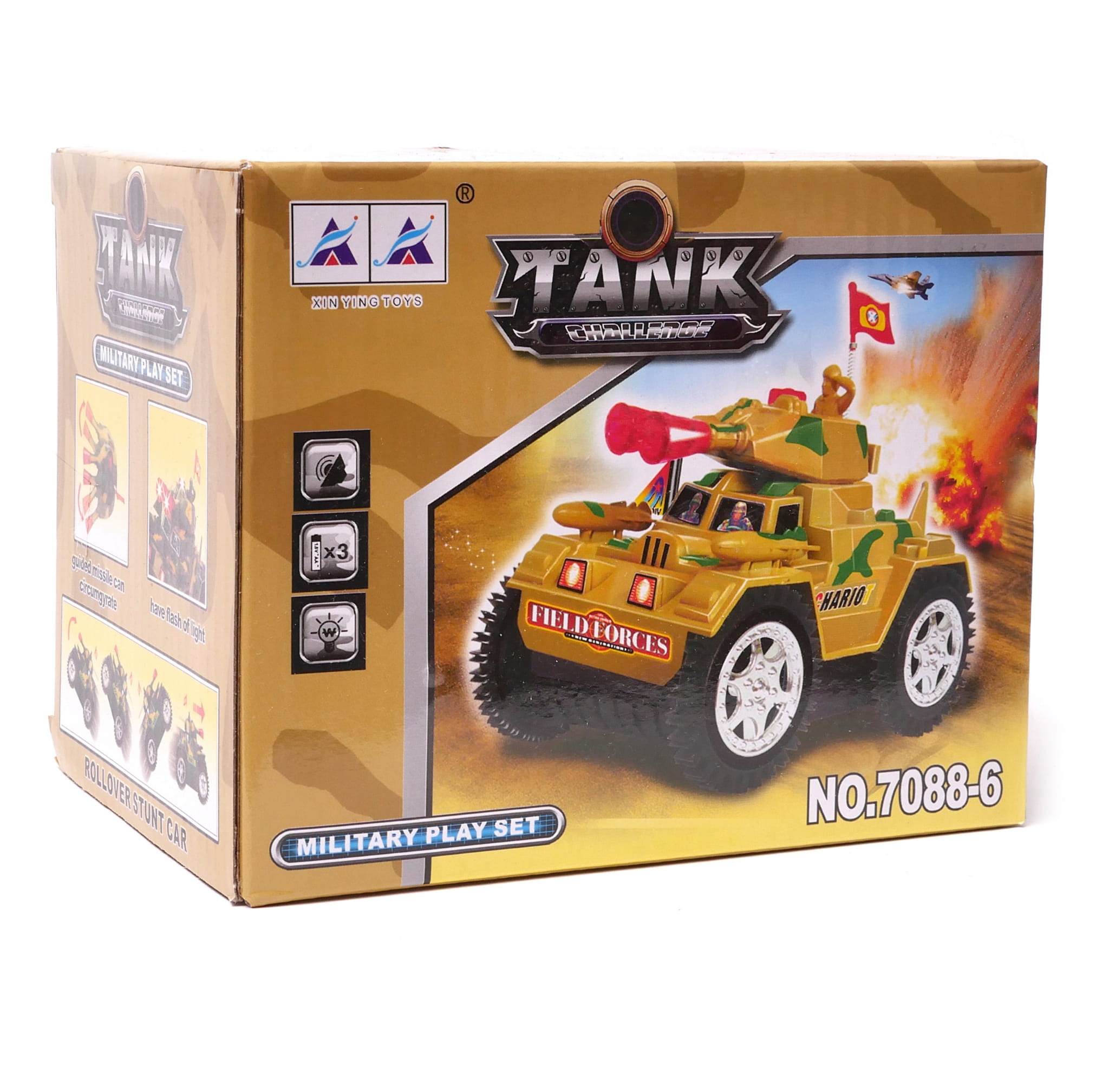 Czołg, który będzie źródłem radości dla małych miłośników techniki wojskowej. Czołg wydaje bitewne odgłosy podczas jazdy, a jego lufa błyska światłem imitując strzały. Najefektowniejszym jednak elementem zabawki jest to, że czołg wyśmienicie sobie radzi jeżdżąc po rozmaitym terenie, a nawet podjeżdża pod ściany, robi fikołka i jedzie dalej. Dzieci będą miły wiele frajdy podkładając różne przedmioty jako przeszkody terenowe i sprawdzać jego możliwości.