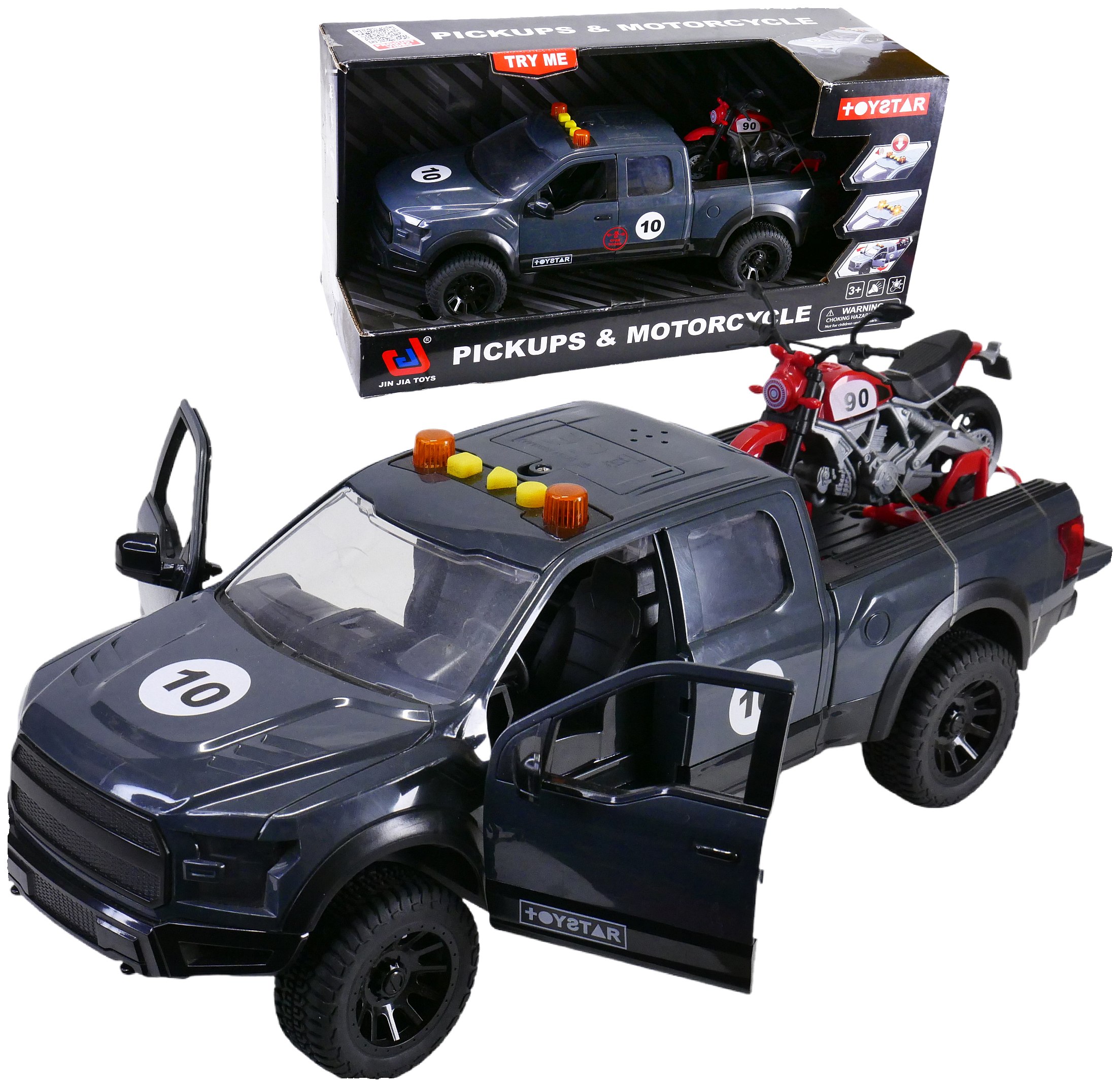 DUŻE AUTO PICKUP CIĘŻARÓWKA 36cm + motocykl krosowy na pace
