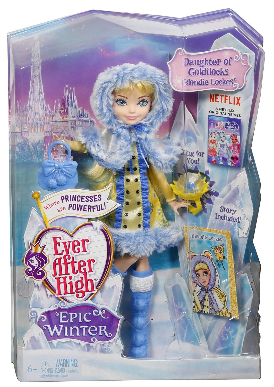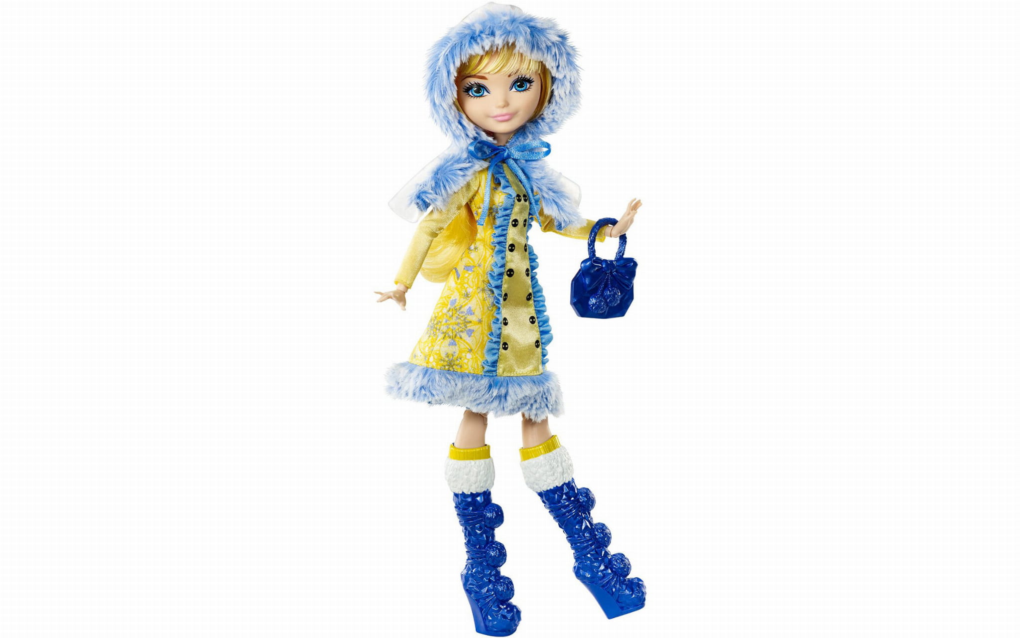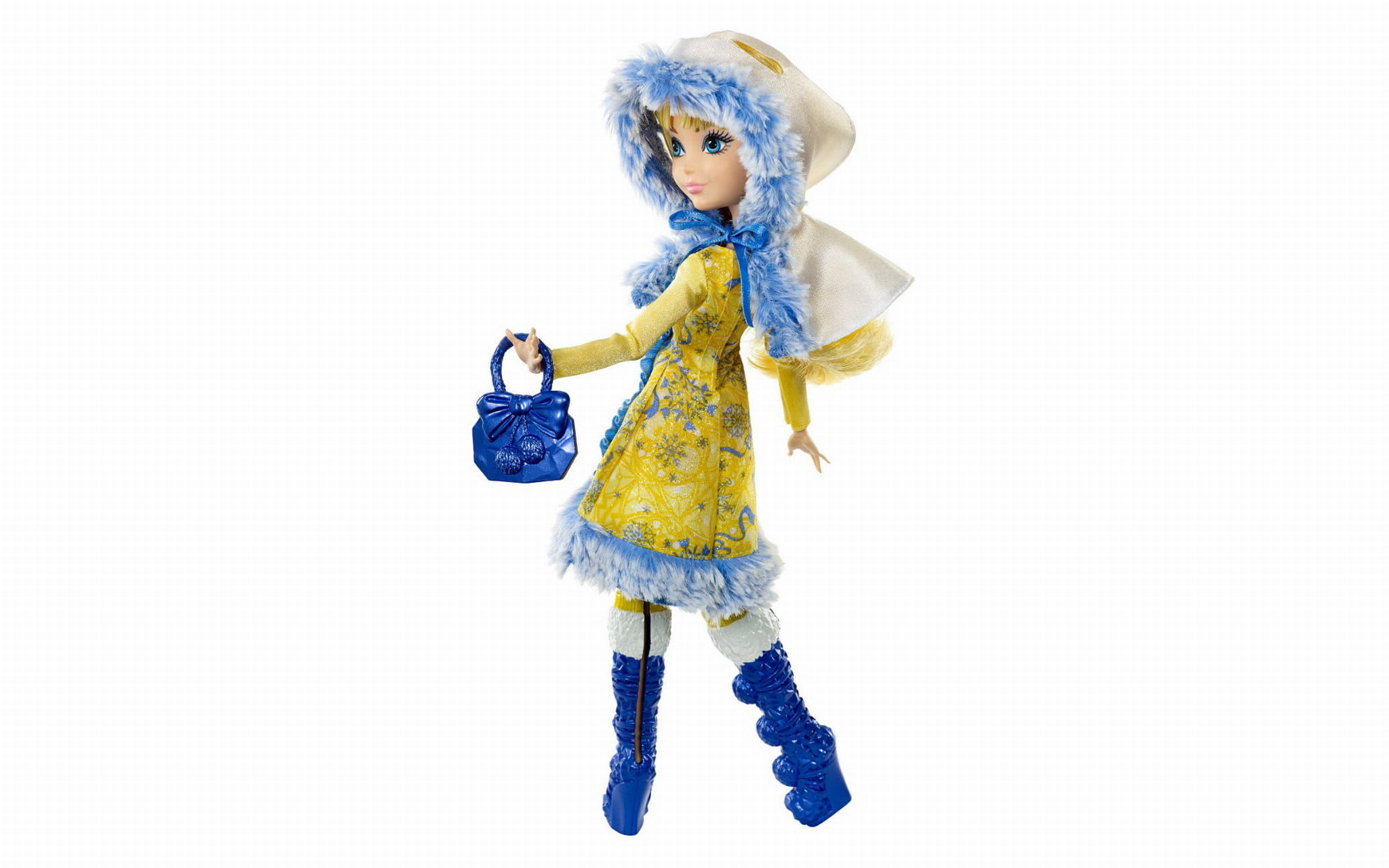 Przygotuj się na najpiękniejszą zimę z tą lalką Blondie Lockes! Córka Złotowłosej z nowego filmu „Ever After High™: Dodatkowo Blondie Lockes trzyma torebkę, a na głowie ma piękny kaptur z futrem! Do lalki dołączono pierścionek dla dziewczynki, aby urozmaić odgrywane historyjki.