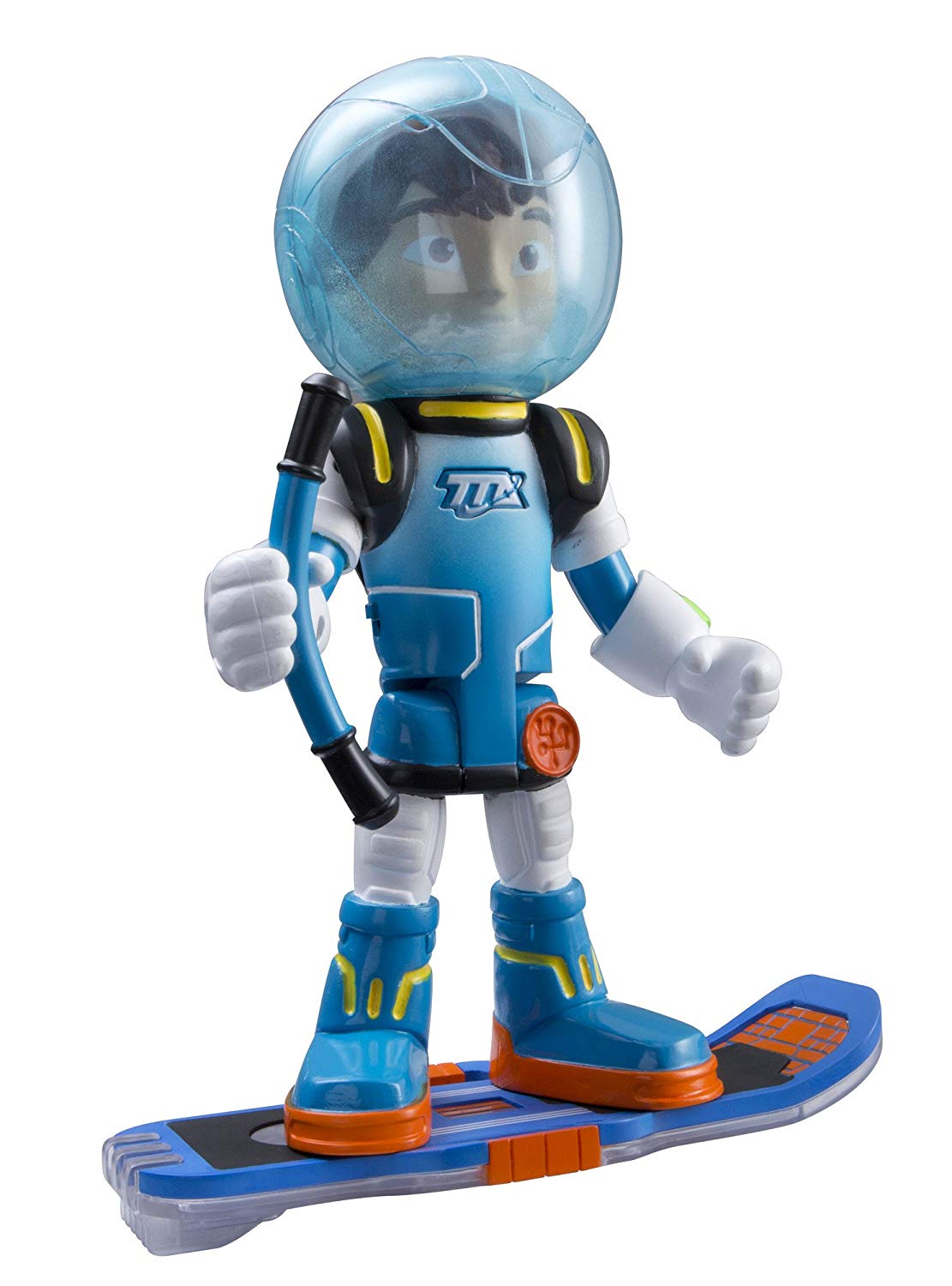 Duża filmowa figurka dla miłośników serialu dla dzieci "Miles z Przyszłości". Figurka wydaje dźwięki, a w zestawie dołączony jest kosmiczny hełm i deskorolka. Jak na funkcyjną figurkę ma ruchome ręce i nogi. Hełm Milesowi oczywiście można założyć na głowę aby mógł bezpiecznie poruszać się w przestrzeni kosmicznej u obcych planetach. Figurkę również można postawić stabilnie na deskorolce dzięki wyprofilowanym wypustkom dopasowanym do otworów w stopach. Wówczas w ręce wkładamy kierownicę do prowadzenia tej galaktycznej deskorolki i czas wyruszyć na gwiezdną wyprawę.