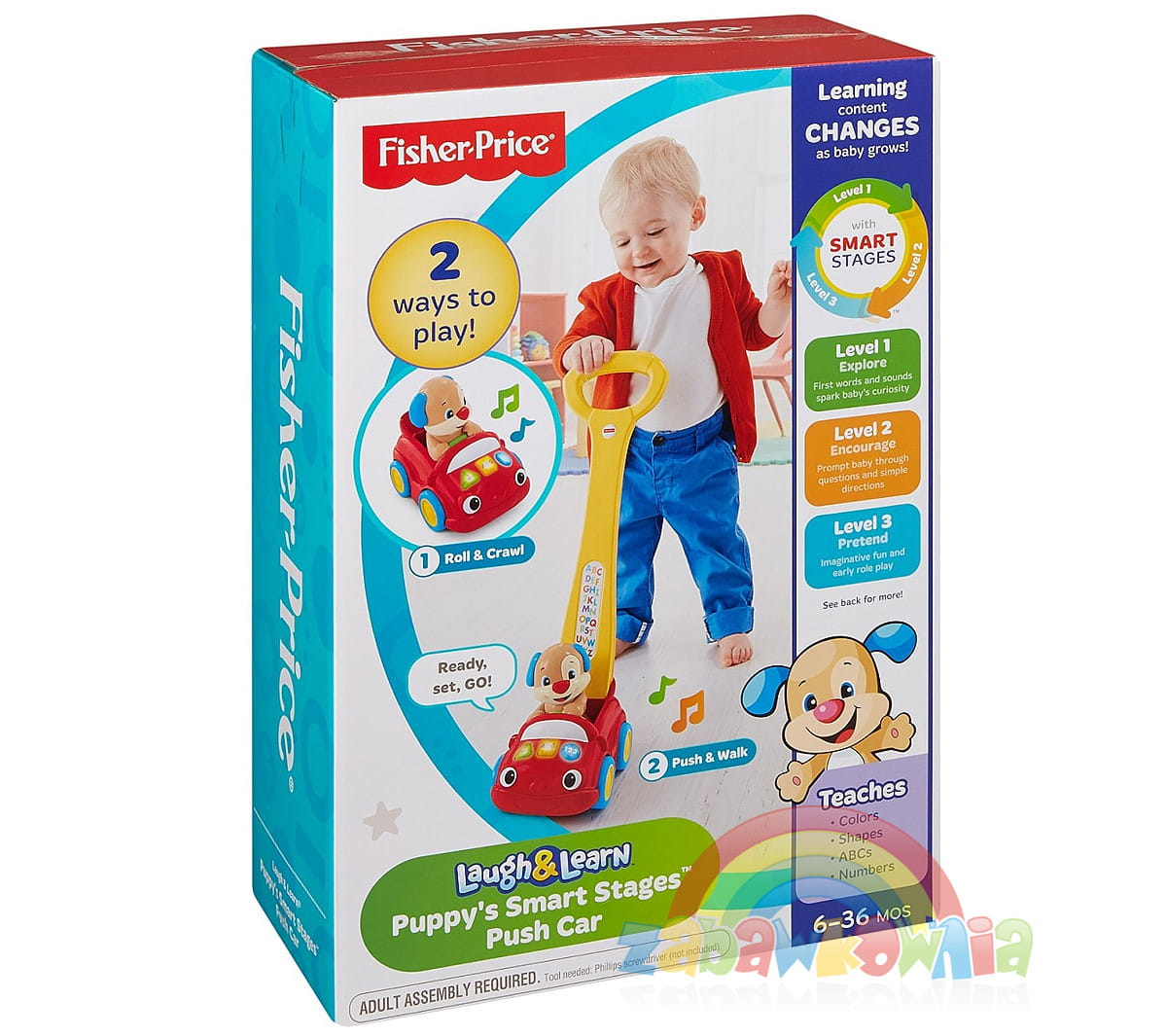 Autko Szczeniaczka to nie tylko kolorowy samochodzik do zabawy, ale też wspaniała pchanka, którą można zabrać na spacer. Autko można w dowolnym czasie odczepić od uchwytu i wówczas staje się samodzielną zabawką. Samochód Szczeniaczka to interaktywny pojazd wyposażony w technologię "Poziomy Nauki" dostosowując edukacyjną zawartość do wieku dziecka. Do wyboru trybu służy przełącznik znajdujący się z tyłu autka. Z jego przodu natomiast znajdują się trzy podświetlane przyciski w rozmaitych kształtach włączające wesołe piosenki, komunikaty i rymowanki, różne dla każdego poziomu nauki. Autko bawi ucząc literek, cyferek, kolorów i kształtów poprzez zabawę. Edukacyjna zawartość taka jak piosenki, wierszyki i komunikaty są w języku polskim.