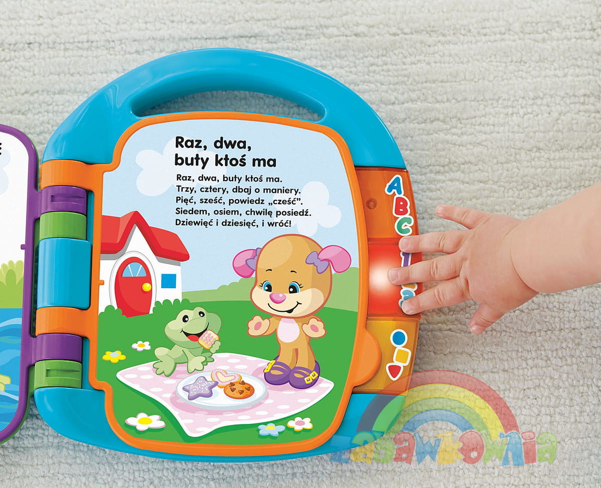 Szczeniaczek zaprasza do cudownej zabawy z wierszykami, które znajdziesz w rozśpiewanej książeczce z serii "Ucz się i Śmiej". Maluszki przewracając strony z kolorowymi ilustracjami poznają kształty i kolory i ciekawych 6 wierszowanek. Książeczka ma trzy podświetlane klawisze które pozwalają dotrzeć do dodatkowych interaktywnych treści. Dzieci będą tą książeczką zachwycane, a marka Fisher-Price ostarała się żeby zabawa pobudzała rozwój dzieci i ich zdolności.