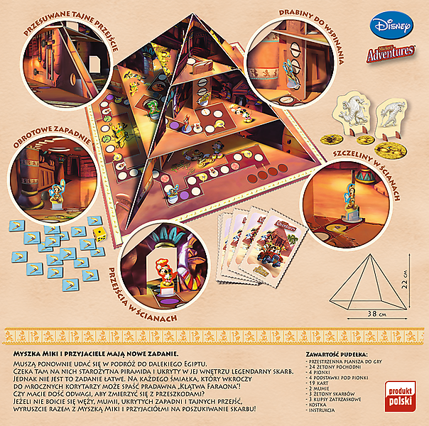 Myszka Miki i przyjaciele wybierają się w podróż do Królestwa Faraonów. W krętych labiryntach piramidy spotka ich wiele niespodzianek. Tajemnicze korytarze, wężowiska i złowrogie mumie, to tylko niektóre z przygód z jakimi muszą się zmierzyć, by przezwyciężyć Klątwę Faraona i dotrzeć do skarbu ukrytego w piramidzie. Ten gracz, któremu uda się jako pierwszemu przezwyciężyć wszystkie zasadzki i dotrzeć do skarbu wygrywa.