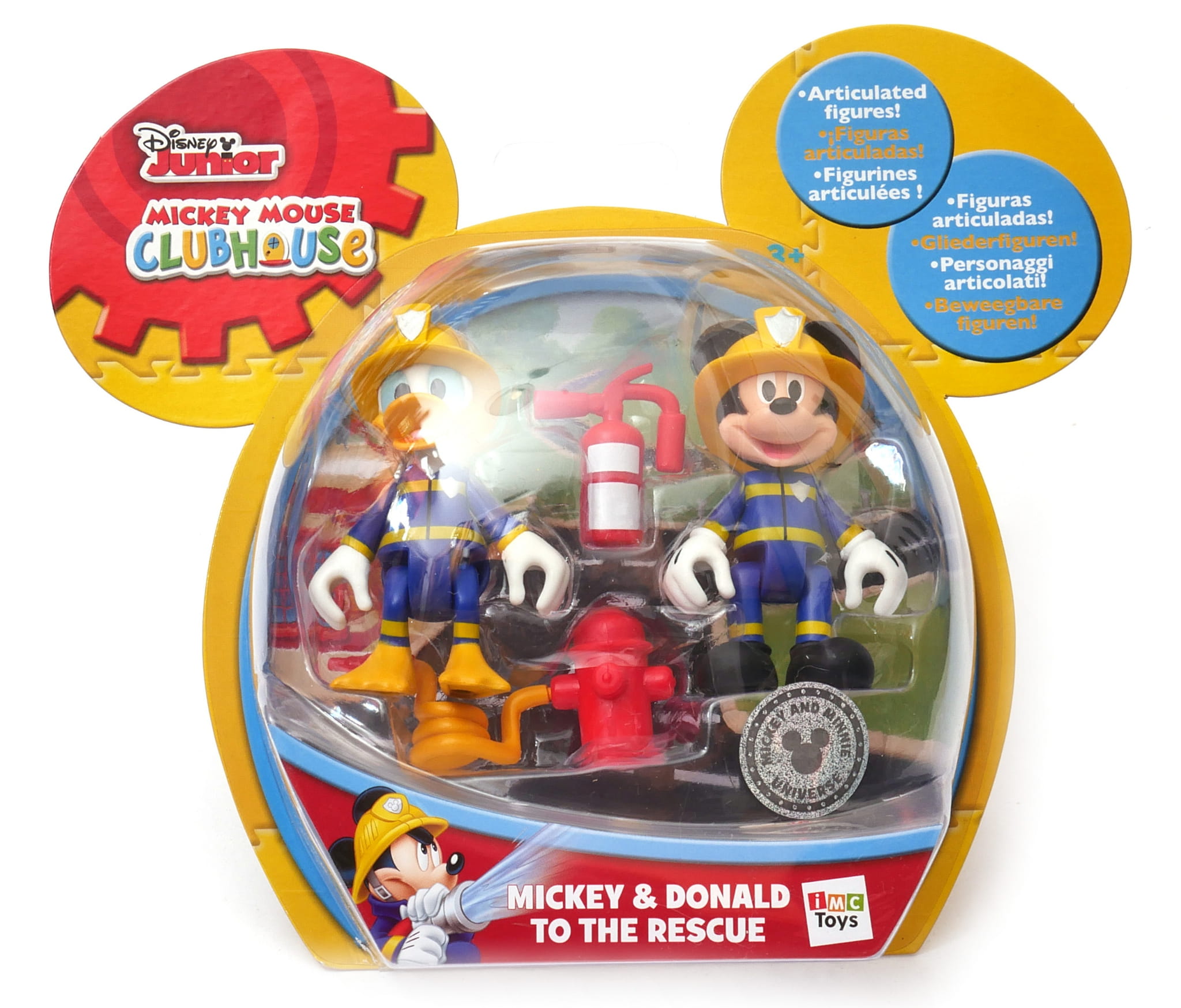 Zestaw do zabawy - dwie figurki Mickey Mouse Clube House. W zestawie znajdziemy dwie postacie znane z filmów animowanych dla dzieci Walta Disneya. Figurka Kaczor Donald i Myszka Miki dziś występują w roli strażaków. Dołączone zostały też strażackie atrybuty takie jak gaśnica i hydrant z wężem strażackim.