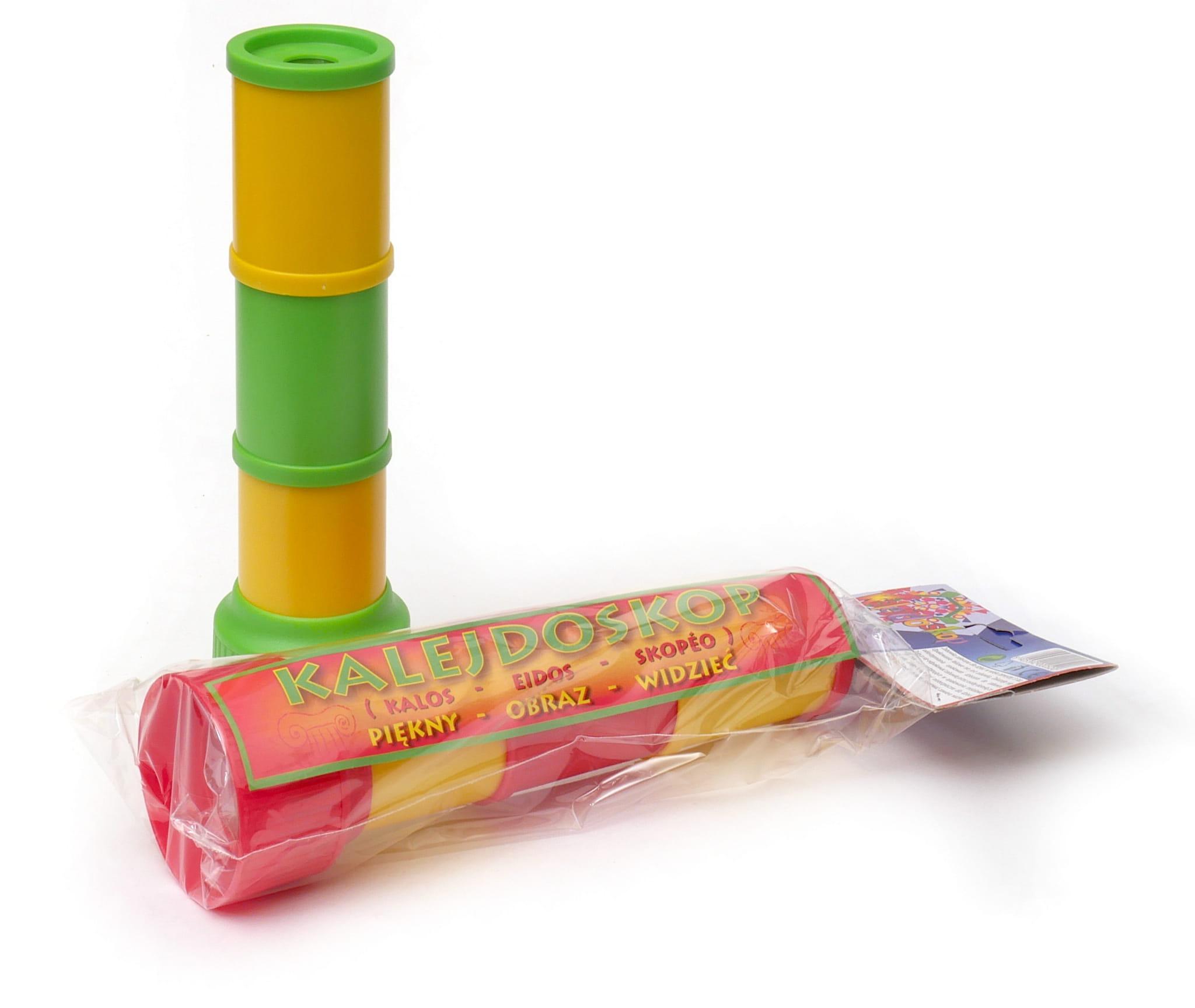 Tradycyjna zabawka zachęca do obserwacji i nigdy się nie znudzi. Podczas przekręcania obiektywu można podziwiać przemieszczanie się różnych kształtów, kolorów i obrazów.